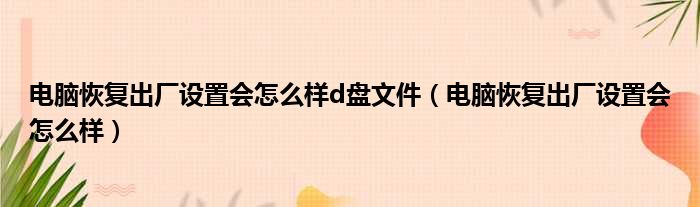 大家好,今天小六子来为大家解答以下的问题,关于电脑恢复出厂设置会怎么样d盘文件,电脑恢复出厂设置会怎么样这个很多人还不知道,现在让我们一起来看看吧!