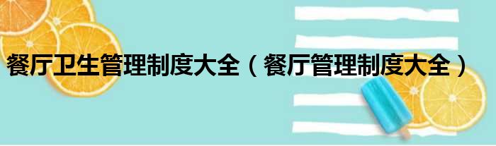 大家好,今天小六子来为大家解答以下的问题,关于餐厅卫生管理制度大全,餐厅管理制度大全这个很多人还不知道,现在让我们一起来看看吧!