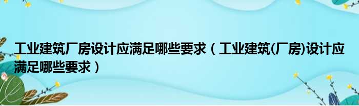 大家好,今天小六子来为大家解答以下的问题,关于工业建筑厂房设计应满足哪些要求,工业建筑(厂房)设计应满足哪些要求这个很多人还不知道,现在让我们一起来看看吧!