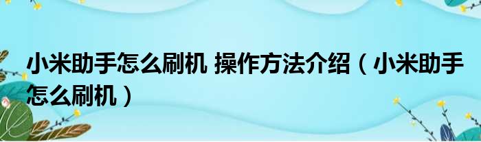 大家好,今天小六子来为大家解答以下的问题,关于小米助手怎么刷机 操作方法介绍,小米助手怎么刷机这个很多人还不知道,现在让我们一起来看看吧!