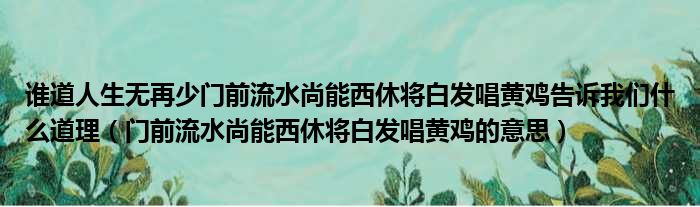 大家好,今天小六子来为大家解答以下的问题,关于谁道人生无再少门前流水尚能西休将白发唱黄鸡告诉我们什么道理,门前流水尚能西休将白发唱黄鸡的意思这个很多人还不知道,现在让我们一起来看看吧!