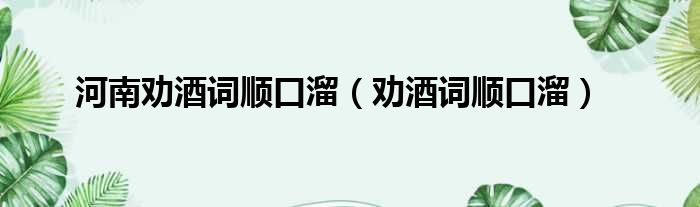 河南劝酒词顺口溜 劝酒词顺口溜 网络整理 经验 2023-06-12 05:11:10 大家好,今天小六子来为大家解答以下的问题,关于河南劝酒词顺口溜,劝酒词顺口溜这个很多人还不知道,现在让我们一起来看看吧!1、一两二两漱漱口,三两四两不算酒,五两六两扶墙走。2、七两八两还在吼。本文分享完毕,希望对你有所帮助。 声明:免责声明:本文来源网友投稿及网络整合仅代表文章作者的个人观点,与本站无关。其原创性、真实性以及文中陈述文字和内容未经本站证实,对本文以及其中全部或者部分内容文字的真实性、完整性和原创性本站不作任何保证或承诺,请读者仅作参考,并自行核实相关内容。投诉邮箱:1765130767@qq.com。 本文地址:https://www.anfu123.com/jingyan/70925.html