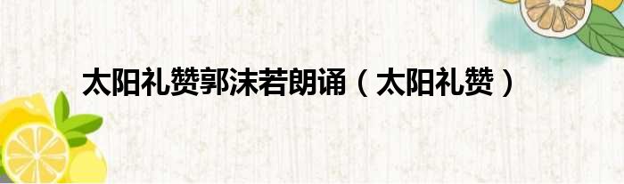 大家好,今天小六子来为大家解答以下的问题,关于太阳礼赞郭沫若朗诵,太阳礼赞这个很多人还不知道,现在让我们一起来看看吧!