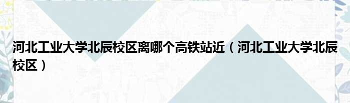 大家好,今天小六子来为大家解答以下的问题,关于河北工业大学北辰校区离哪个高铁站近,河北工业大学北辰校区这个很多人还不知道,现在让我们一起来看看吧!