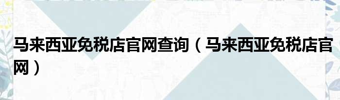 大家好,今天小六子来为大家解答以下的问题,关于马来西亚免税店官网查询,马来西亚免税店官网这个很多人还不知道,现在让我们一起来看看吧!