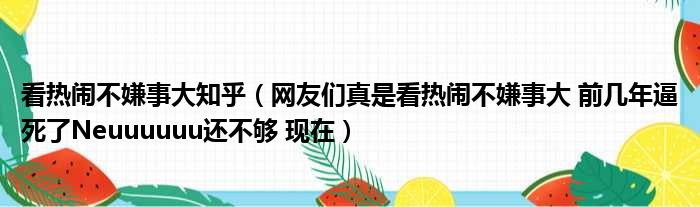 大家好,今天小六子来为大家解答以下的问题,关于看热闹不嫌事大知乎,网友们真是看热闹不嫌事大 前几年逼死了Neuuuuuu还不够 现在这个很多人还不知道,现在让我们一起来看看吧!