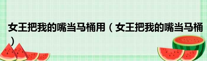 大家好,今天小六子来为大家解答以下的问题,关于女王把我的嘴当马桶用,女王把我的嘴当马桶这个很多人还不知道,现在让我们一起来看看吧!