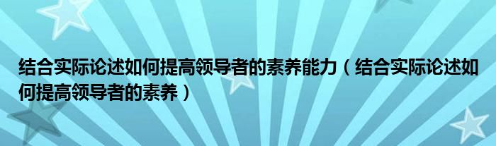 大家好,今天小六子来为大家解答以下的问题,关于结合实际论述如何提高领导者的素养能力,结合实际论述如何提高领导者的素养这个很多人还不知道,现在让我们一起来看看吧!