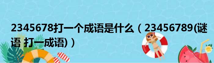 大家好,今天小六子来为大家解答以下的问题,关于2345678打一个成语是什么,23456789(谜语 打一成语)这个很多人还不知道,现在让我们一起来看看吧!