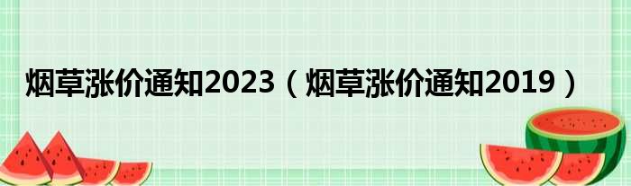 大家好,今天小六子来为大家解答以下的问题,关于烟草涨价通知2023,烟草涨价通知2019这个很多人还不知道,现在让我们一起来看看吧!