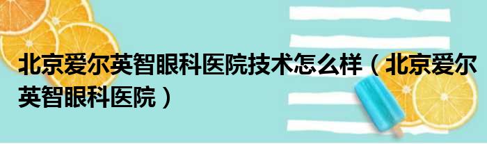 大家好,今天小六子来为大家解答以下的问题,关于北京爱尔英智眼科医院技术怎么样,北京爱尔英智眼科医院这个很多人还不知道,现在让我们一起来看看吧!