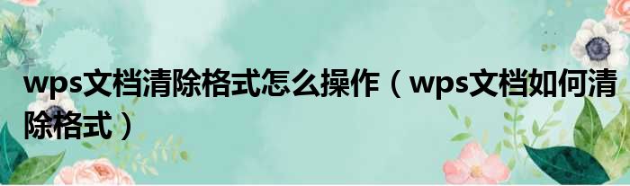 大家好,今天小六子来为大家解答以下的问题,关于wps文档清除格式怎么操作,wps文档如何清除格式这个很多人还不知道,现在让我们一起来看看吧!
