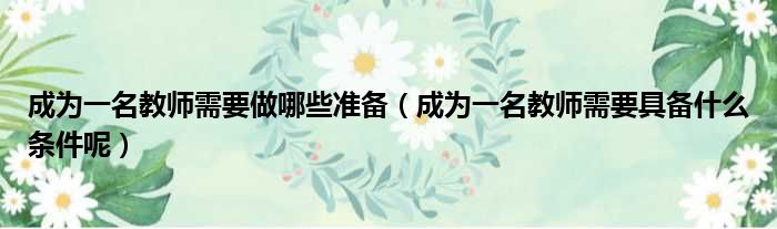 大家好,今天小六子来为大家解答以下的问题,关于成为一名教师需要做哪些准备,成为一名教师需要具备什么条件呢这个很多人还不知道,现在让我们一起来看看吧!