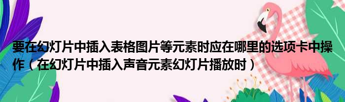 大家好,今天小六子来为大家解答以下的问题,关于要在幻灯片中插入表格图片等元素时应在哪里的选项卡中操作,在幻灯片中插入声音元素幻灯片播放时这个很多人还不知道,现在让我们一起来看看吧!