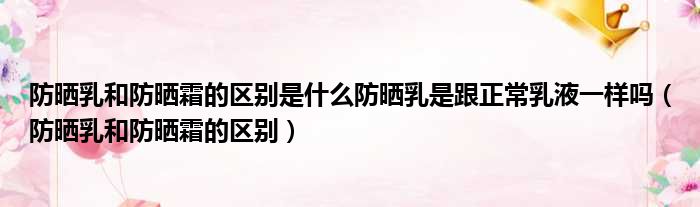 大家好,今天小六子来为大家解答以下的问题,关于防晒乳和防晒霜的区别是什么防晒乳是跟正常乳液一样吗,防晒乳和防晒霜的区别这个很多人还不知道,现在让我们一起来看看吧!