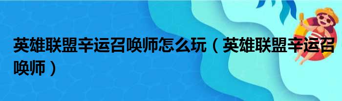 大家好,今天小六子来为大家解答以下的问题,关于英雄联盟辛运召唤师怎么玩,英雄联盟辛运召唤师这个很多人还不知道,现在让我们一起来看看吧!