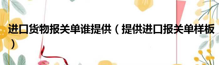 进口货物报关单谁提供 提供进口报关单样板 网络整理 经验 2023-06-14 17:40:04 大家好,今天小六子来为大家解答以下的问题,关于进口货物报关单谁提供,提供进口报关单样板这个很多人还不知道,现在让我们一起来看看吧!1、进口报关单样本和出口报关单样本是一样的。2、就是抬头一个是进口一个是出口。本文分享完毕,希望对你有所帮助。 声明:免责声明:本文来源网友投稿及网络整合仅代表文章作者的个人观点,与本站无关。其原创性、真实性以及文中陈述文字和内容未经本站证实,对本文以及其中全部或者部分内容文字的真实性、完整性和原创性本站不作任何保证或承诺,请读者仅作参考,并自行核实相关内容。投诉邮箱:1765130767@qq.com。 本文地址:https://www.anfu123.com/jingyan/71821.html