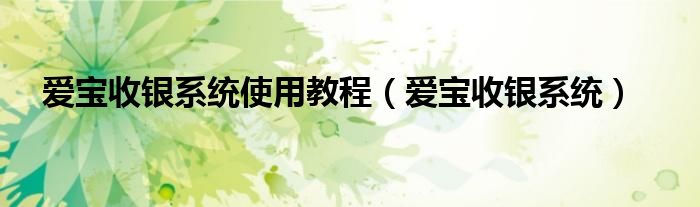 大家好,今天小六子来为大家解答以下的问题,关于爱宝收银系统使用教程,爱宝收银系统这个很多人还不知道,现在让我们一起来看看吧!