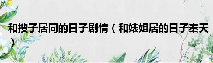 大家好,今天小六子来为大家解答以下的问题,关于和搜子居同的日子剧情,和婊姐居的日子秦天这个很多人还不知道,现在让我们一起来看看吧!