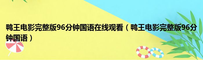 大家好,今天小六子来为大家解答以下的问题,关于鸭王电影完整版96分钟国语在线观看,鸭王电影完整版96分钟国语这个很多人还不知道,现在让我们一起来看看吧!