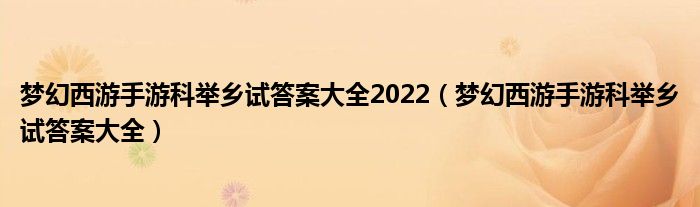 大家好,今天小六子来为大家解答以下的问题,关于梦幻西游手游科举乡试答案大全2022,梦幻西游手游科举乡试答案大全这个很多人还不知道,现在让我们一起来看看吧!