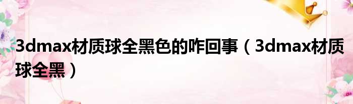 大家好,今天小六子来为大家解答以下的问题,关于3dmax材质球全黑色的咋回事,3dmax材质球全黑这个很多人还不知道,现在让我们一起来看看吧!
