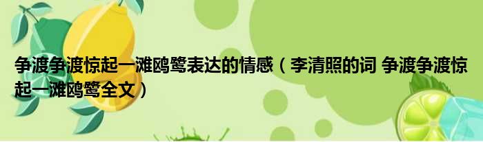 大家好,今天小六子来为大家解答以下的问题,关于争渡争渡惊起一滩鸥鹭表达的情感,李清照的词 争渡争渡惊起一滩鸥鹭全文这个很多人还不知道,现在让我们一起来看看吧!