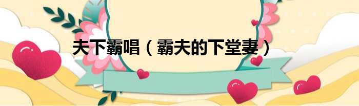 大家好,今天小六子来为大家解答以下的问题,关于夫下霸唱,霸夫的下堂妻这个很多人还不知道,现在让我们一起来看看吧!