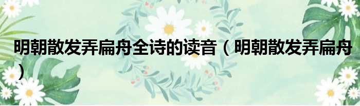 大家好,今天小六子来为大家解答以下的问题,关于明朝散发弄扁舟全诗的读音,明朝散发弄扁舟这个很多人还不知道,现在让我们一起来看看吧!