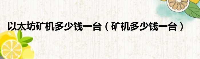 大家好,今天小六子来为大家解答以下的问题,关于以太坊矿机多少钱一台,矿机多少钱一台这个很多人还不知道,现在让我们一起来看看吧!