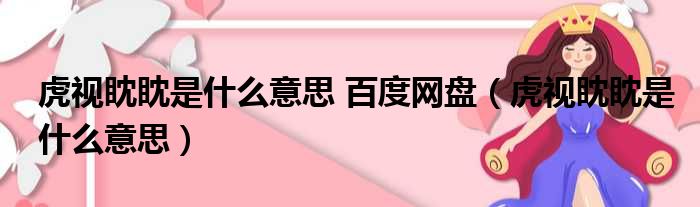 大家好,今天小六子来为大家解答以下的问题,关于虎视眈眈是什么意思 百度网盘,虎视眈眈是什么意思这个很多人还不知道,现在让我们一起来看看吧!