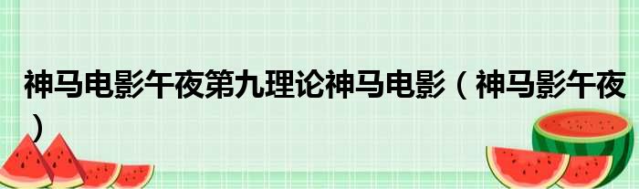 大家好,今天小六子来为大家解答以下的问题,关于神马电影午夜第九理论神马电影,神马影午夜这个很多人还不知道,现在让我们一起来看看吧!