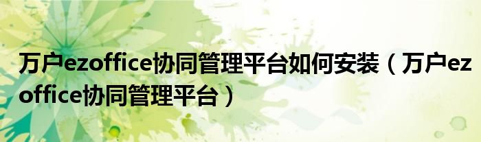 大家好,今天小六子来为大家解答以下的问题,关于万户ezoffice协同管理平台如何安装,万户ezoffice协同管理平台这个很多人还不知道,现在让我们一起来看看吧!