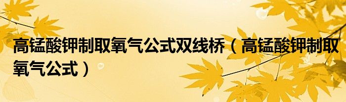 大家好,今天小六子来为大家解答以下的问题,关于高锰酸钾制取氧气公式双线桥,高锰酸钾制取氧气公式这个很多人还不知道,现在让我们一起来看看吧!