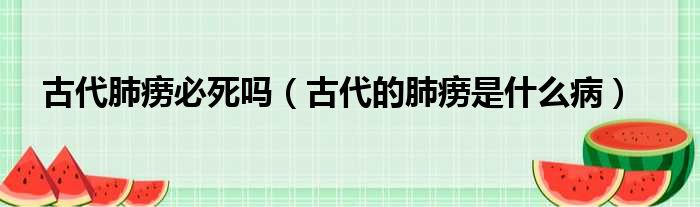古代肺痨必死吗 古代的肺痨是什么病 网络整理 经验 2023-06-16 03:31:19 大家好,今天小六子来为大家解答以下的问题,关于古代肺痨必死吗,古代的肺痨是什么病这个很多人还不知道,现在让我们一起来看看吧!1、肺结核。2、因为古代没有抑制病菌的药得了必死。3、传染性还强。本文分享完毕,希望对你有所帮助。 声明:免责声明:本文来源网友投稿及网络整合仅代表文章作者的个人观点,与本站无关。其原创性、真实性以及文中陈述文字和内容未经本站证实,对本文以及其中全部或者部分内容文字的真实性、完整性和原创性本站不作任何保证或承诺,请读者仅作参考,并自行核实相关内容。投诉邮箱:1765130767@qq.com。 本文地址:https://www.anfu123.com/jingyan/72337.html