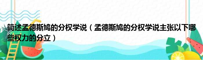 大家好,今天小六子来为大家解答以下的问题,关于简述孟德斯鸠的分权学说,孟德斯鸠的分权学说主张以下哪些权力的分立这个很多人还不知道,现在让我们一起来看看吧!