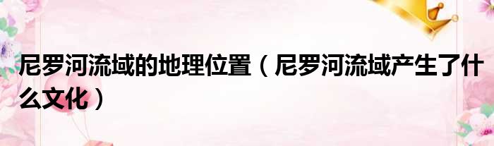 大家好,今天小六子来为大家解答以下的问题,关于尼罗河流域的地理位置,尼罗河流域产生了什么文化这个很多人还不知道,现在让我们一起来看看吧!