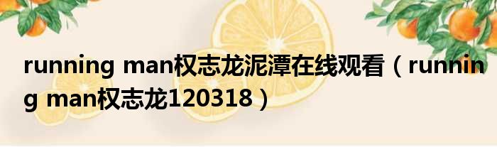大家好,今天小六子来为大家解答以下的问题,关于running man权志龙泥潭在线观看,running man权志龙120318这个很多人还不知道,现在让我们一起来看看吧!