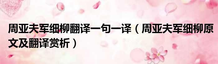 大家好,今天小六子来为大家解答以下的问题,关于周亚夫军细柳翻译一句一译,周亚夫军细柳原文及翻译赏析这个很多人还不知道,现在让我们一起来看看吧!