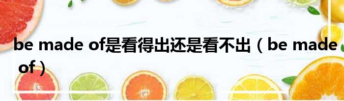 大家好,今天小六子来为大家解答以下的问题,关于be made of是看得出还是看不出,be made of这个很多人还不知道,现在让我们一起来看看吧!