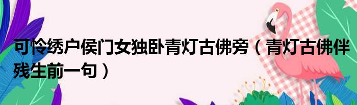 大家好,今天小六子来为大家解答以下的问题,关于可怜绣户侯门女独卧青灯古佛旁,青灯古佛伴残生前一句这个很多人还不知道,现在让我们一起来看看吧!