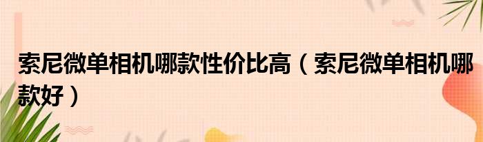 大家好,今天小六子来为大家解答以下的问题,关于索尼微单相机哪款性价比高,索尼微单相机哪款好这个很多人还不知道,现在让我们一起来看看吧!