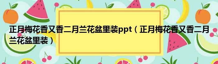大家好,今天小六子来为大家解答以下的问题,关于正月梅花香又香二月兰花盆里装ppt,正月梅花香又香二月兰花盆里装这个很多人还不知道,现在让我们一起来看看吧!