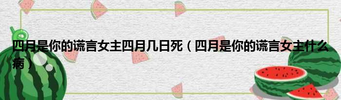 大家好,今天小六子来为大家解答以下的问题,关于四月是你的谎言女主四月几日死,四月是你的谎言女主什么病这个很多人还不知道,现在让我们一起来看看吧!