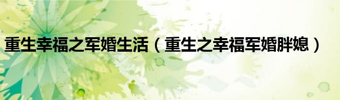 大家好,今天小六子来为大家解答以下的问题,关于重生幸福之军婚生活,重生之幸福军婚胖媳这个很多人还不知道,现在让我们一起来看看吧!