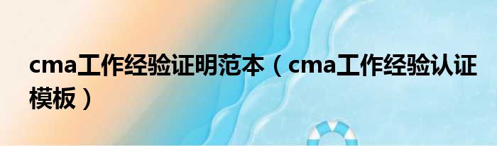 大家好,今天小六子来为大家解答以下的问题,关于cma工作经验证明范本,cma工作经验认证模板这个很多人还不知道,现在让我们一起来看看吧!