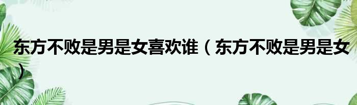 大家好,今天小六子来为大家解答以下的问题,关于东方不败是男是女喜欢谁,东方不败是男是女这个很多人还不知道,现在让我们一起来看看吧!