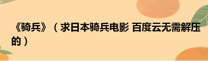 大家好,今天小六子来为大家解答以下的问题,关于《骑兵》,求日本骑兵电影 百度云无需解压的这个很多人还不知道,现在让我们一起来看看吧!