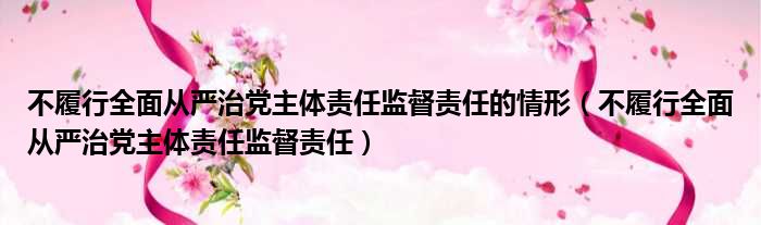 大家好,今天小六子来为大家解答以下的问题,关于不履行全面从严治党主体责任监督责任的情形,不履行全面从严治党主体责任监督责任这个很多人还不知道,现在让我们一起来看看吧!