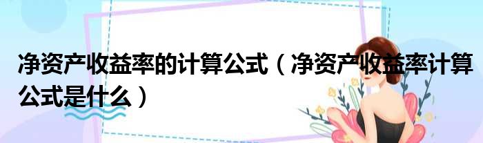大家好,今天小六子来为大家解答以下的问题,关于净资产收益率的计算公式,净资产收益率计算公式是什么这个很多人还不知道,现在让我们一起来看看吧!